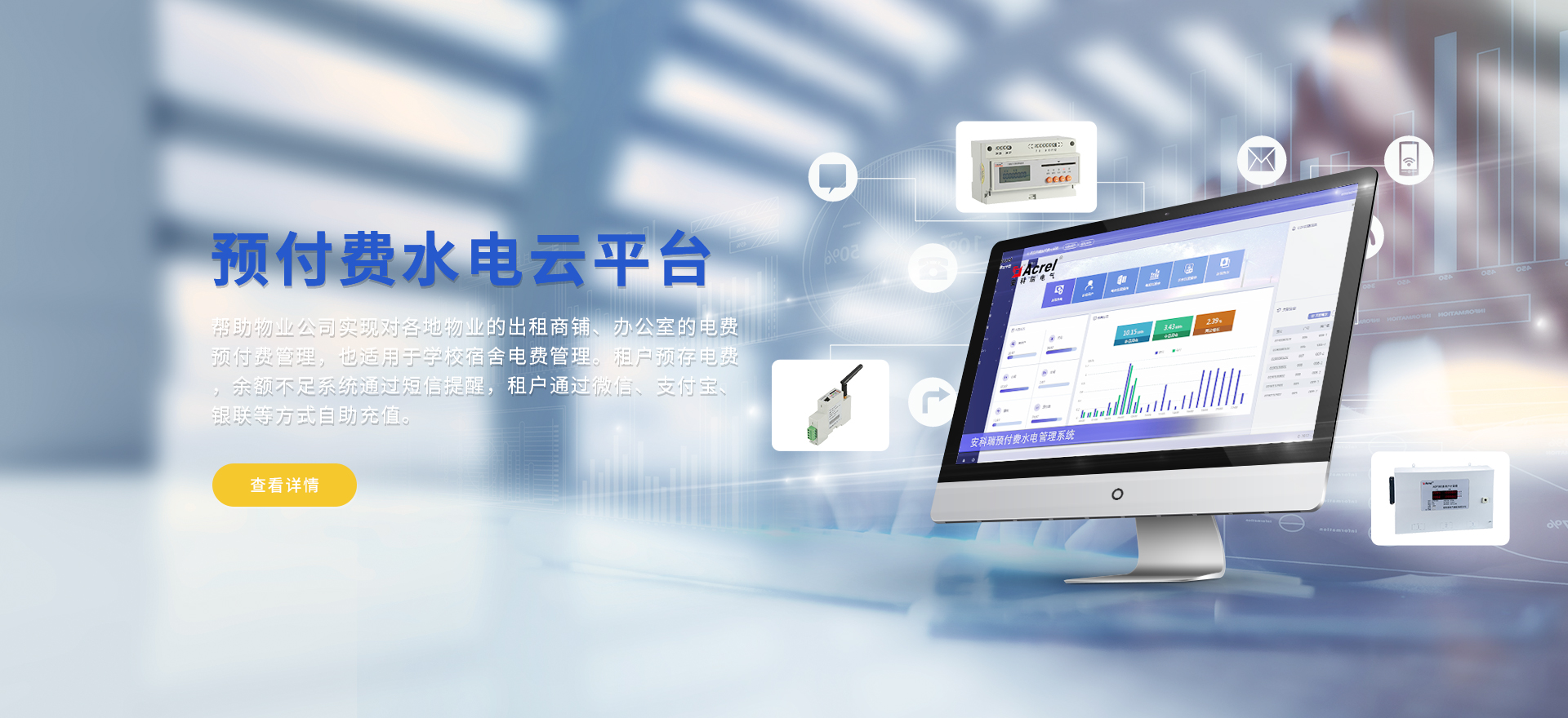 安科瑞提供的解決方案包括Acrel-EIoT能源物聯網云平臺、變電所運維云平臺、安全用電管理云平臺、環保用電監管云平臺、智慧消防云平臺能源管理云平臺、工業企業能源管控平臺、遠程預付費云平臺、餐飲油煙監管云平臺、電動汽車/電瓶車充電樁收費管理云平臺、電力監控/無線測溫系統、電能質量治理系統、電氣火災監控系統消防設備電源監控系統防火門監控系統、應急照明和疏散指示系統、智能照明控制系統、醫用隔離電源絕緣監測系統等,幫助用戶實現能源智能化、可視化、精細化管理,提高用能效率和用能安全,為企業節能降耗和實現能源數字化建設提供數據服務。
